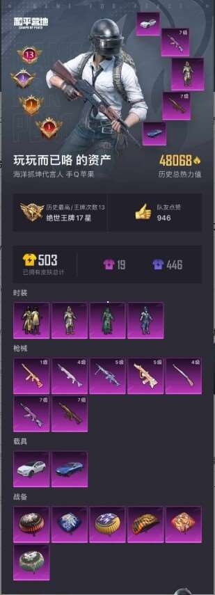 10粉装-14特效枪-1载具-93205热力值-7印记-176套装-276枪皮