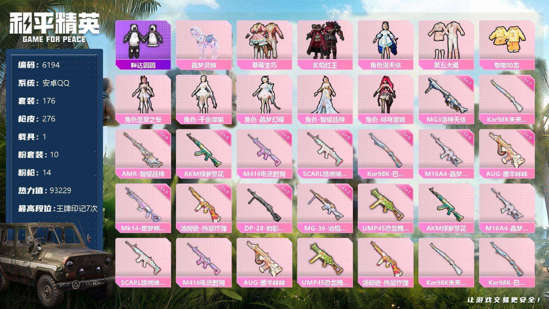 安卓【精品小号/2粉装-5特效枪】手Q-31632热力值-6印记-65套装-100枪皮 【特效枪等级】:SCAR-L-青春物语(七级),M762-青锋波束(五级),UMP45-量子极限(五级),Kar98K-巳巳如意(五级),MG3-辉羽雀灵(三级MG-36-幻