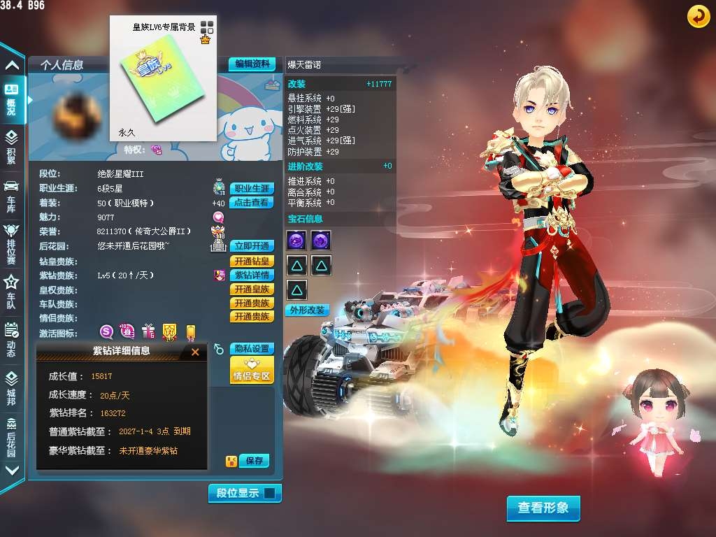 联通皇7/10.3w魅力/情侣贵族前80名/108页女衣柜/炽焰战警悬浮/7动作/92页发饰/绮丽梦游/28页男装/4s/智慧之神全29双4/暗影龙骑全29双4/疾影m18全29/3t2/雷霆机甲全29/2t1/35a/雷诺幻夜全29双4/27坐骑/32骑宠/盖世龙王/+10绮丽精灵/+10飞虎王/+10白羊萝莉