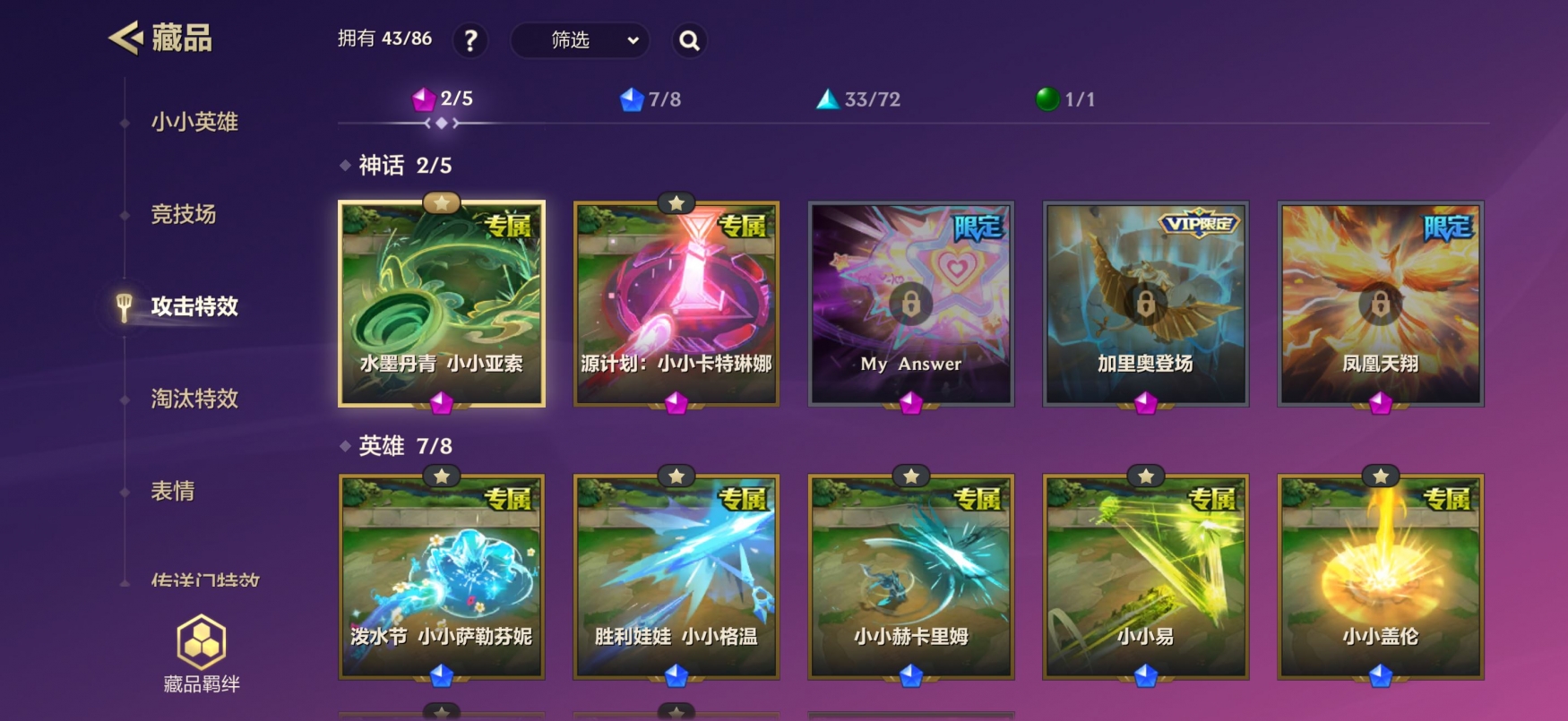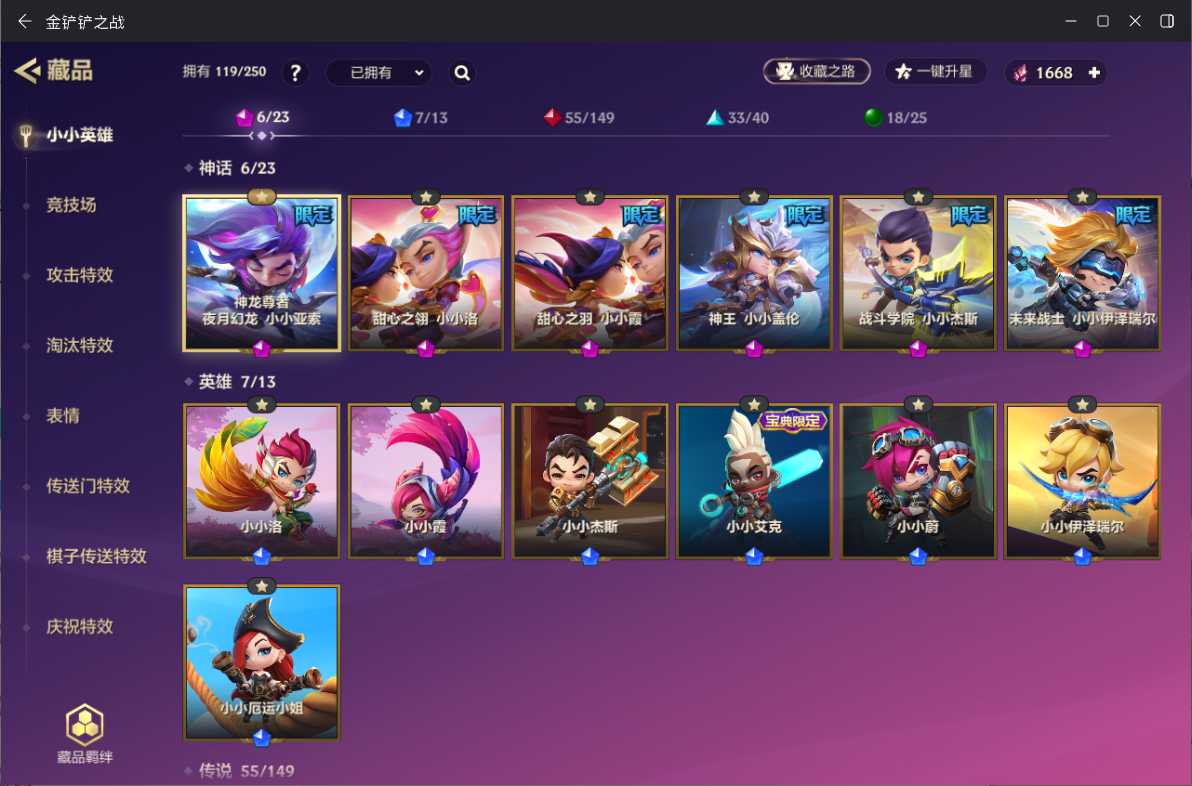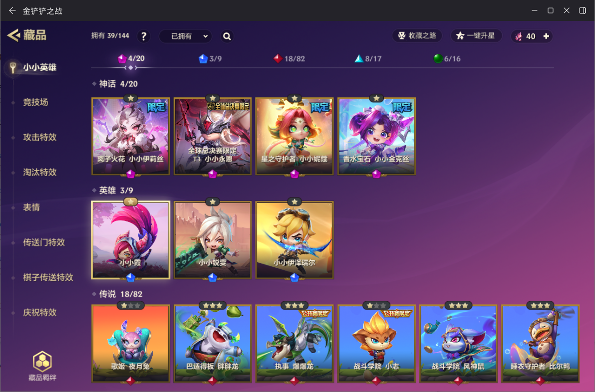 ID:JCCZZ0965】【金铲铲之战】0神话小小英雄-0神话竞技场-11小小英雄-1竞技场-6攻击特效 【限定小小英雄】:小小金克丝,小小索拉卡 【传说小小英雄】:歌姬 夜月兔 【史诗小小英雄】:仙灵 软软,暗夜巫师 怒角 【神话小小英雄】:至臻 离子火花 小小格温