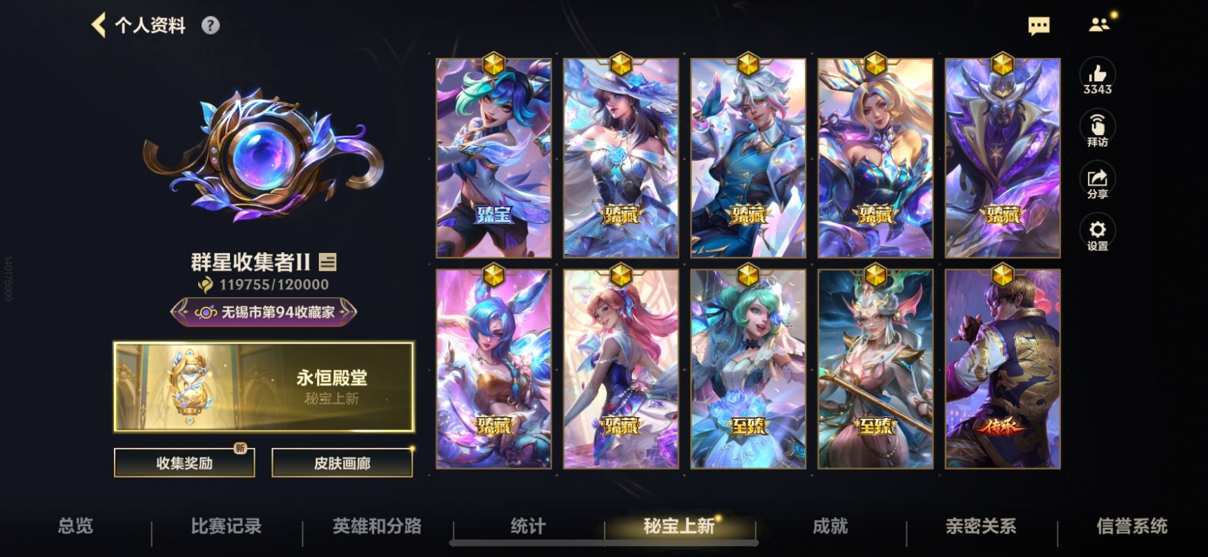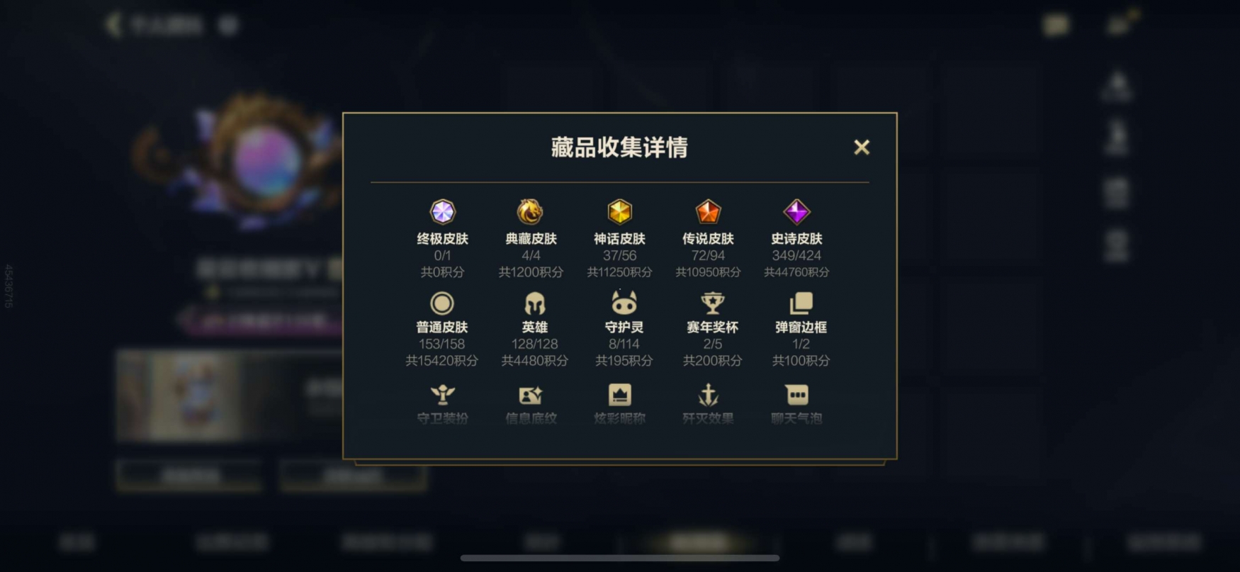 苹果V,可转安卓!金名号!12万收藏积分!645皮肤!满典藏,30神话!白龙回城,3顶级拖尾!青花瓷播报!所有水晶皮肤拉满!ID一个字,迷!各种套装拉满!